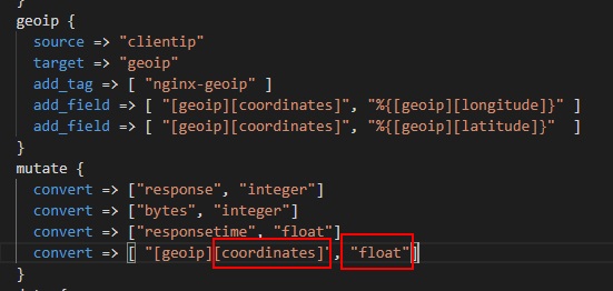 Usually new docker elk logstash already have geoip. add_field like picture and mutate add some item. Here is change type with templates.